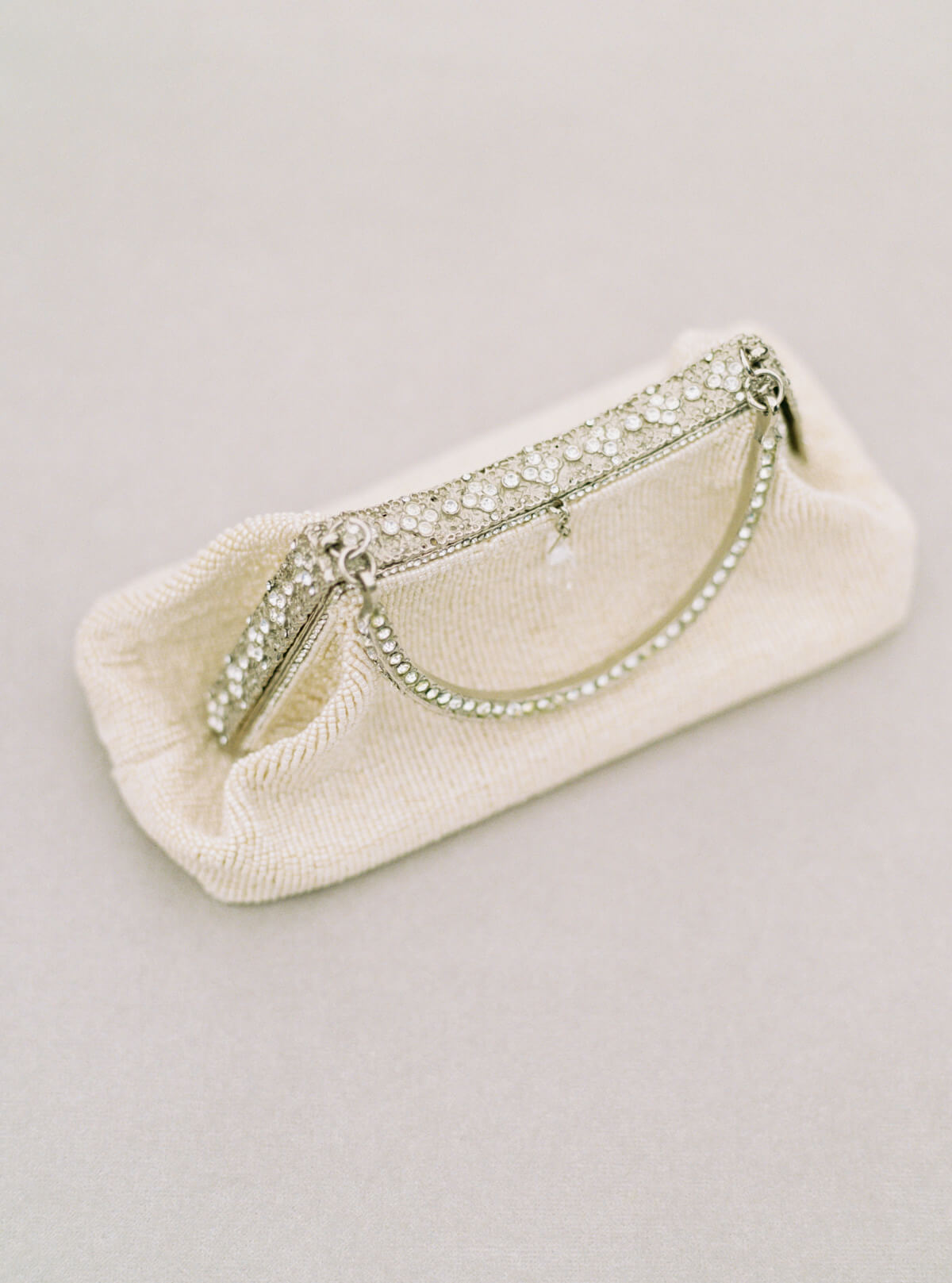 The bride completed her look with a beautiful set of jewellery and accessories. A choker necklace, a matching bracelet with sparkling stones, and delicate drop earrings with a single stone, added an elegant look. Suzie also carried a small ivory clutch bag decorated with tiny beads and sparkling stones, which also added an elegant bridal look.